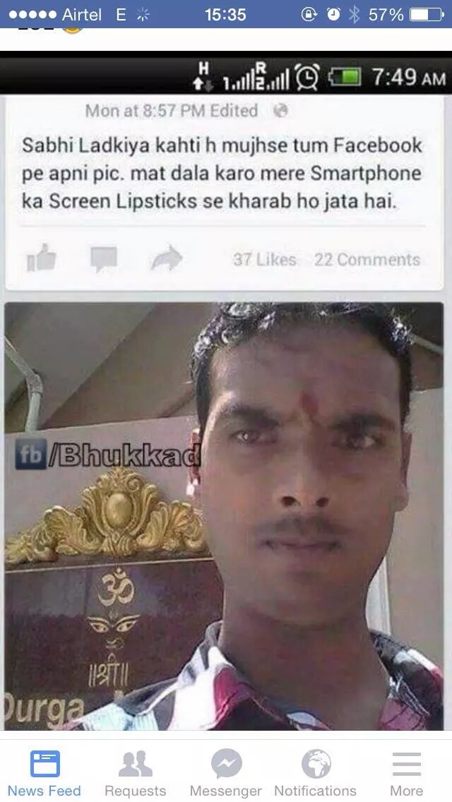 Translation: “Every girl requests me to abstain from posting my pictures on Facebook as they spoil their smartphone’s screen with their lipsticks”. Last heard, he just surpassed Emraan Hashmi to become the top on-screen serial kisser of India.