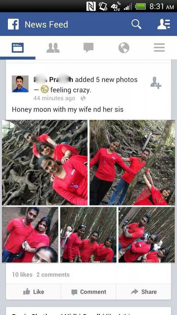 He just could not stop from posting these 5 photos to Facebook after feeling crazy from a honeymoon with his wife and her sister.