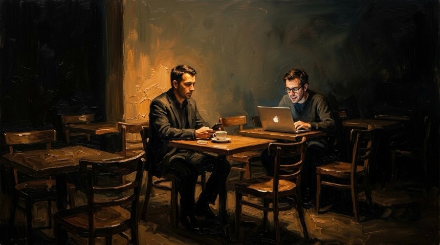 eyes glued to his laptop’s screen